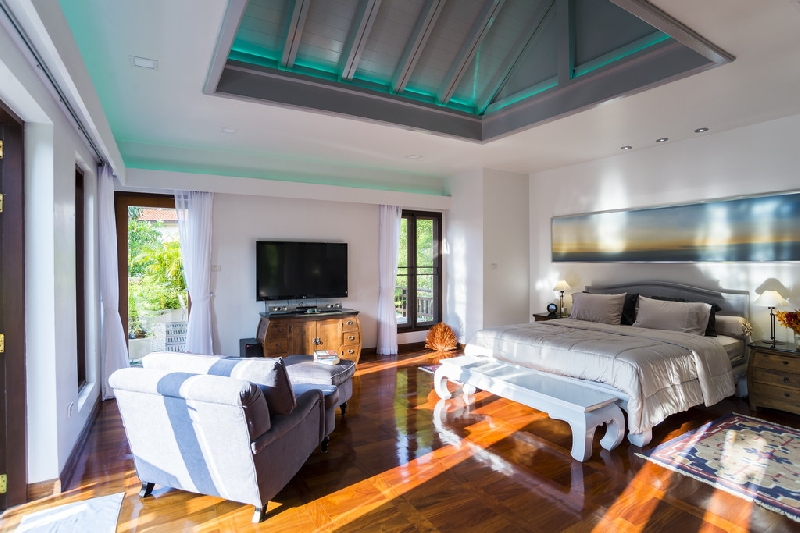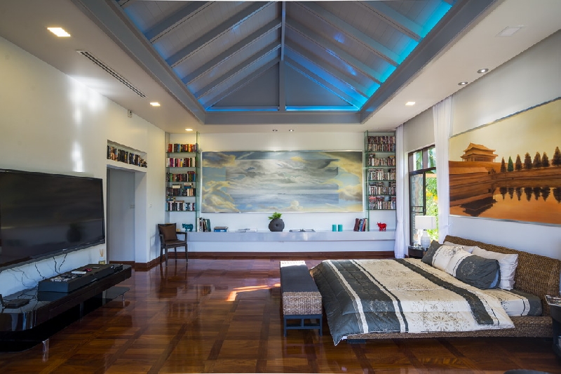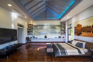 The master bedroom has a ceiling and recessed lighting. It is very specious and furnished with furniture of the highest quality and 6 TC with HiFi systems.