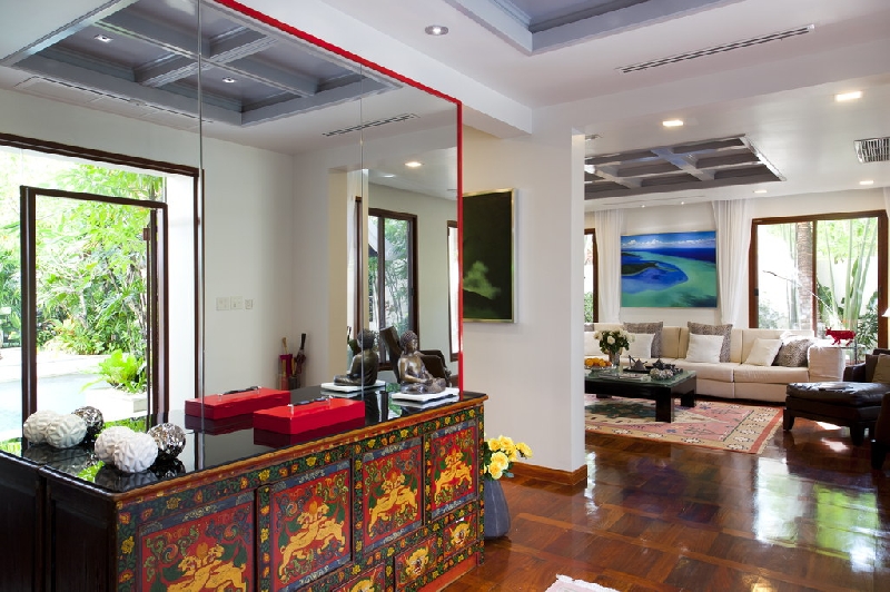 Exclusive finishes and details, hardwood floors, custom designed ceiling with integrated air conditioning and lighting, a modern kitchen with perfect equipment, a gym with Jacuzzi, swimming pool with lighting and Jacuzzi, a garden designed by a landscape designer. Two waterfalls, irrigation system, three terraces, the fog system in the garden. Security alarm has been installed.