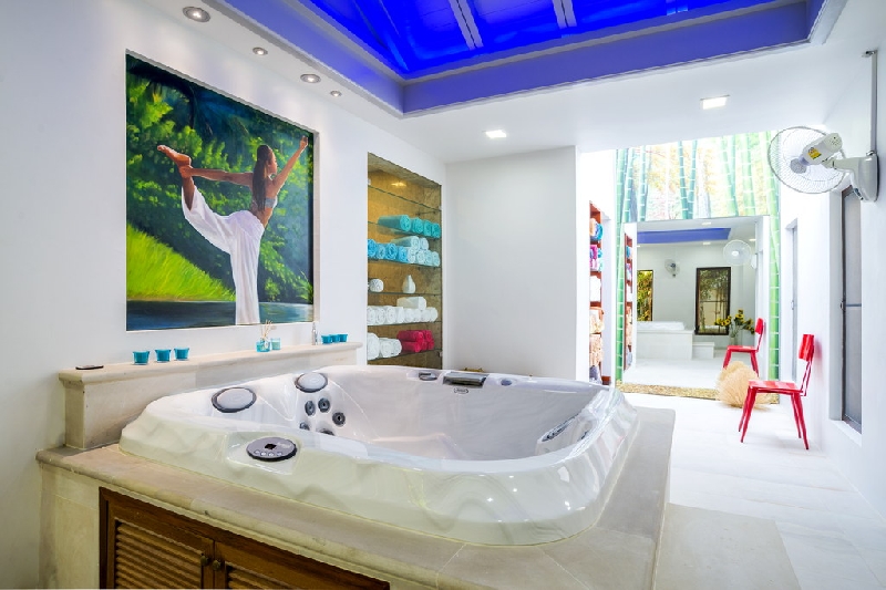 A gym with Jacuzzi.