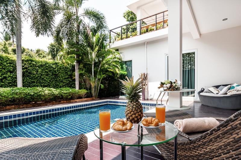 Villas with 2-5 bedrooms and a pool are fully furnished and designed for your comfortable stay. These large villas have an area of 190 - 460 sq.m with plots of 420 - 700 sq.m with a private pool and parking.
