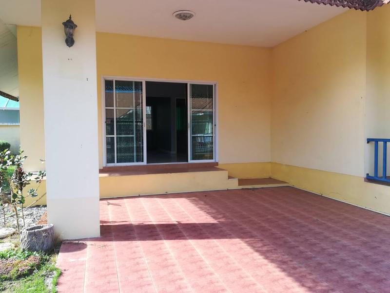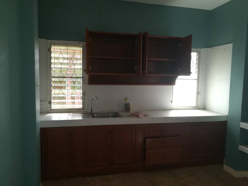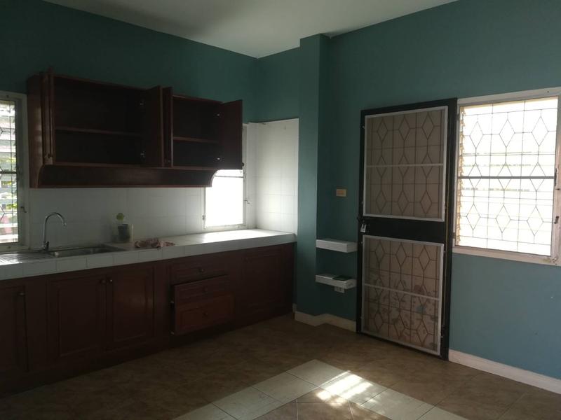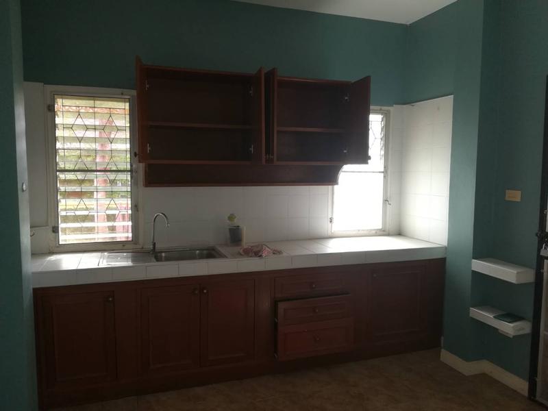 House with 3 bedrooms in the village in East Pattaya. 2 bathrooms, built-in kitchen. House without furniture. The plot area is 96 sq.wah (384 sq.m).