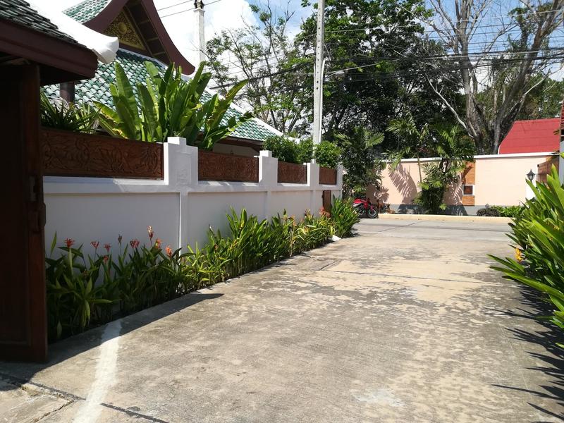 The village is located in a quiet area between the Jomtien embankment and the Sukhumvit highway. The distance to the beach is only about 1200 meters. The lively soi Wat Boon street has 24-hour convenience stores such as 7-Eleven, Family Mart, Tesco Express, a large market located opposite the Park Lane Jomtien Resort and Majestic Condo condominiums, a few steps from the residence with laundry, massage parlors, cafes and restaurants. Tesco Lotus, MAKRO or Big C Jumbo large supermarkets are within a short drive.