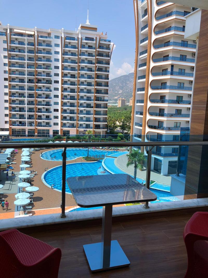 On the territory of a residential complex: parking, terrace, landscape design, outdoor pool, restaurant, grocery deliveries, Internet Wi-Fi. Services: rental of apartments (optional), daily cleaning of apartments (optional), air ticket, 24-hour reception, laundry, bicycle rental (free of charge), airport transfer and return, currency exchange, hairdresser, beauty salon, car rental, excursion bureau, service (ironing), sports and recreation, water slide, massage services, table tennis, Turkish bath, tennis court. The distance to the sea is about 1.2 km.