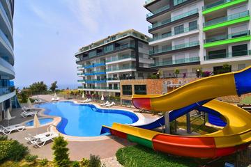 New residential complex in the area Kargicak. This is a very cozy and green area surrounded by nature, but not far from the active city life. This project is located a few minutes walk from the beach and just 20 minutes from Gazipasha airport. This project consists of two blocks with 80 apartments. There are one-bedroom and two-bedroom apartments near the sea and large penthouses with a roof terrace. Apartment owners and their guests can enjoy amenities such as indoor and outdoor pools, a hammam, a sauna, a steam room and massage rooms, a fitness center and other entertainment that will make your stay relaxing and comfortable.