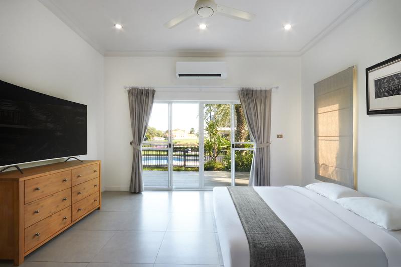 Two-bedroom house next to the Phoenix Gold Golf course in East Pattaya. 2 bathrooms, built-in kitchen. Fully furnished. The plot is 1000 sq.m. Private pool.