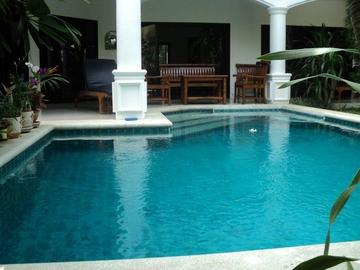 House with 3 bedrooms in the village, Na Jomtien area. Fully furnished, 3 bathrooms, spacious living room, private pool, barbecue area by the pool, TV channels in each room. The plot is 400 square meters