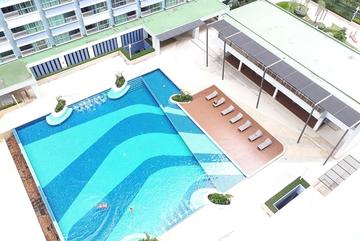 New high-rise condominium, executed in a modern style near Jomtien Beach with a great view of the sea. The complex has 5 buildings of 30 floors. On the vast territory of the complex there is an excellent infrastructure: two large swimming pools, a playground for street basketball, a children's slide, a library with a large reading room and free wi-fi internet, several laundries, a fitness room, a sauna, a coffee shop, a lounge on the roof, and elevators. Nearby are many shops and restaurants.