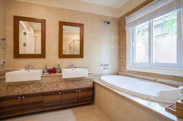 Rent. Beautiful house of 200 sq.m with 3 bedrooms and a pool in a village with excellent infrastructure. East Pattaya. Fully furnished. 3 bathrooms, 1 spacious European-style living room with built-in kitchen. Air conditioning in every room, hot water system, private pool, parking for 2 cars, remote parking system. Plot area 416 sq.m.