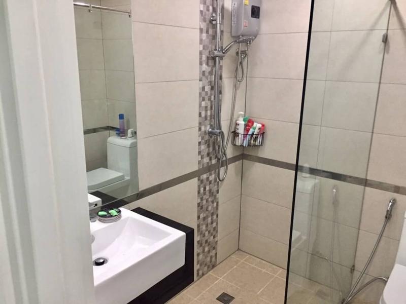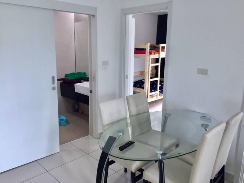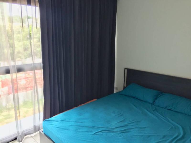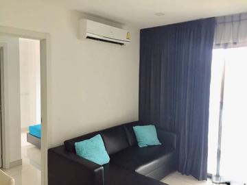 The apartment is 55 sq.m with 2 bedrooms, 2 bathrooms, located on the 5th floor in a new condominium in the prestigious Pratumnak district. Fully furnished and equipped. 2 bathrooms, 1 living room with built-in kitchen. View of the hills.