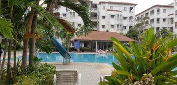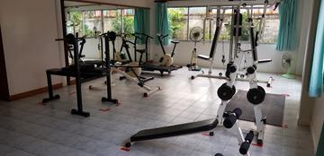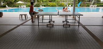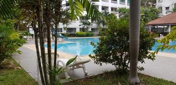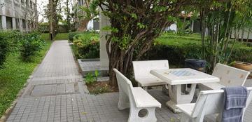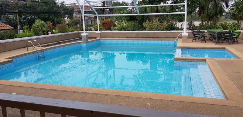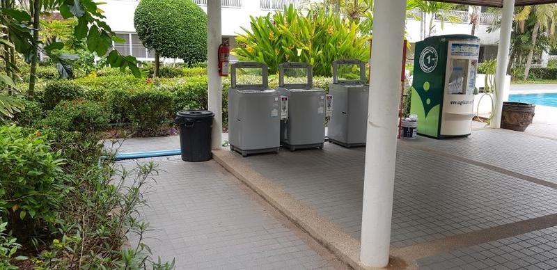 Common amenities include: three swimming pools, fitness centers, tennis courts, a launderette. The beautiful garden contributes a lot to its quiet, park atmosphere. Nearby there is a 7/11 shop, inexpensive restaurants, laundry and other amenities.