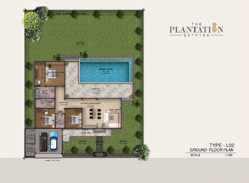 Various house plans are available, but there are modification options for specific needs. All houses will include a private pool and garage.