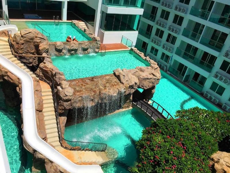 The project is an excellent residential complex, harmoniously combining all the conditions of a modern concept of comfortable life with affordable embodiment in a good area of Pattaya - Jomtien. Even with these conditions, the developer has managed to create a unique project that has amazing features - the real atmosphere of the Amazon jungle with a decorative volcano, waterfalls, beaches and caves in an area of 13,500 sq.m. The residential part of the project consists of four 8-storey buildings surrounded by a magnificent unusual pool on three levels with a jacuzzi, water slides, fountains, massage waterfalls.