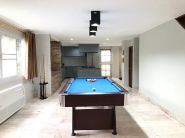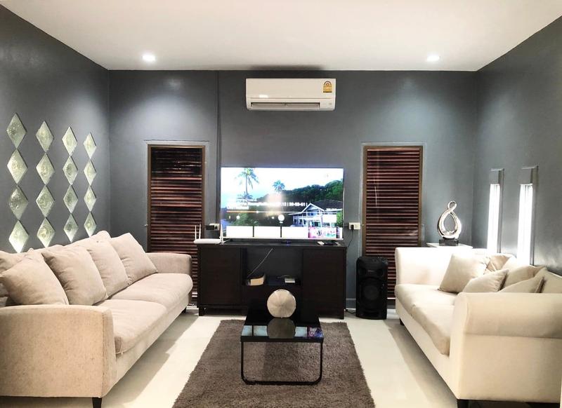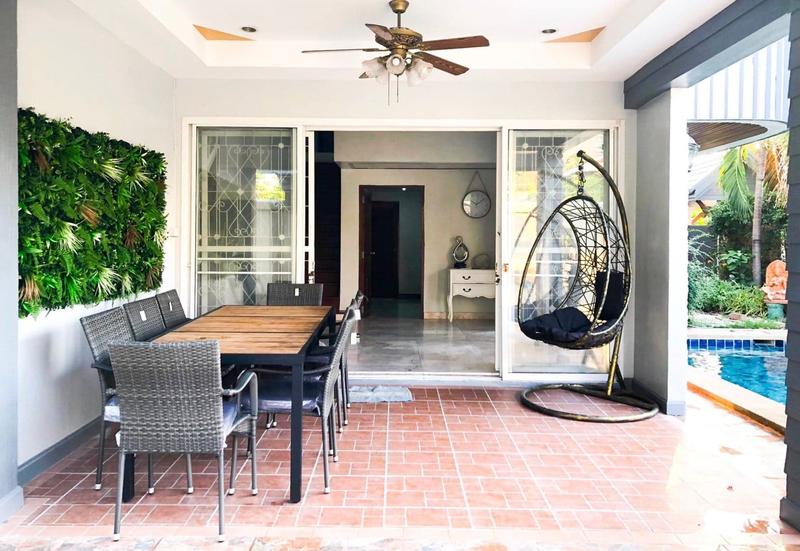 The house is fully furnished, living room, dining room, kitchen with full equipment (microwave, refrigerator, oven, rice cooker, hot pot, toaster), Washing machine. BBQ grill (outdoor), Pool table, Karaoke, Swimming pool.