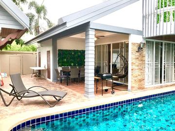 Rent. The 4-bedroom, 4-bathroom house with private pool has an excellent location 400 meters from Jomtien beach (at Jomtien Beach Paradise).