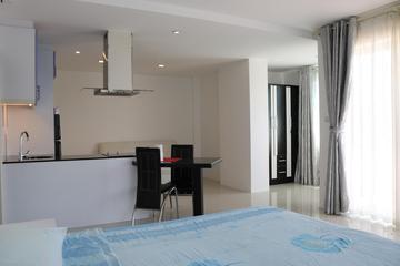 Large studio 47.03 sqm on the 4rd floor in a condominium with a great location in Jomtien. Garden and city view on Jomtien side. Distance to sea about 700 meters. Foreign quota.