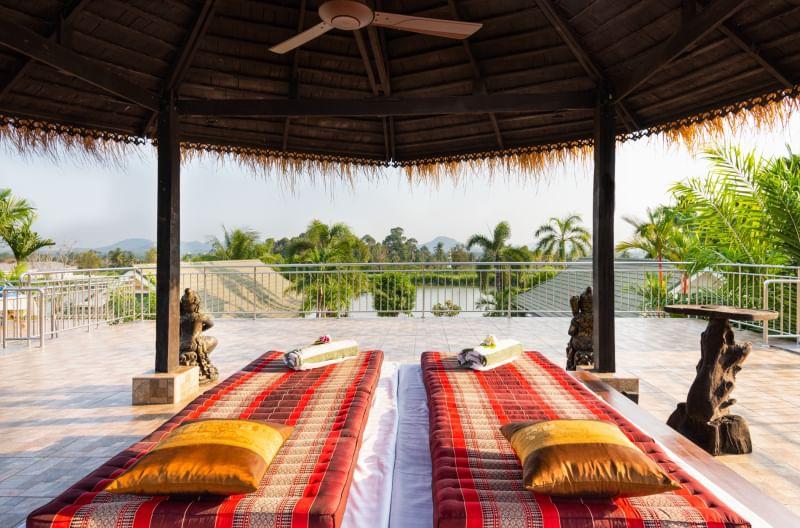 3 rooftops (gym, massage, bar) with 2 bridges,