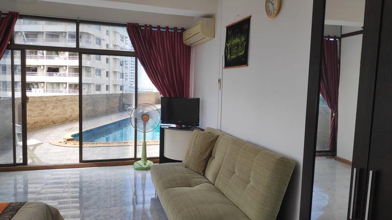 Studio is located on the 4th floor of the condominium located in Pratumnak soi 6. 1 bathroom. Pool access.