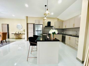 Executive house for sales bedroom All with Ensuite, total bathroom, 5, European kitchen fitted to high standard Delightful lounge and dining area outside parking, Swimming pool, outdoor cooking and BBQ area At the rear of the house is a laundry area, all so a putting green.