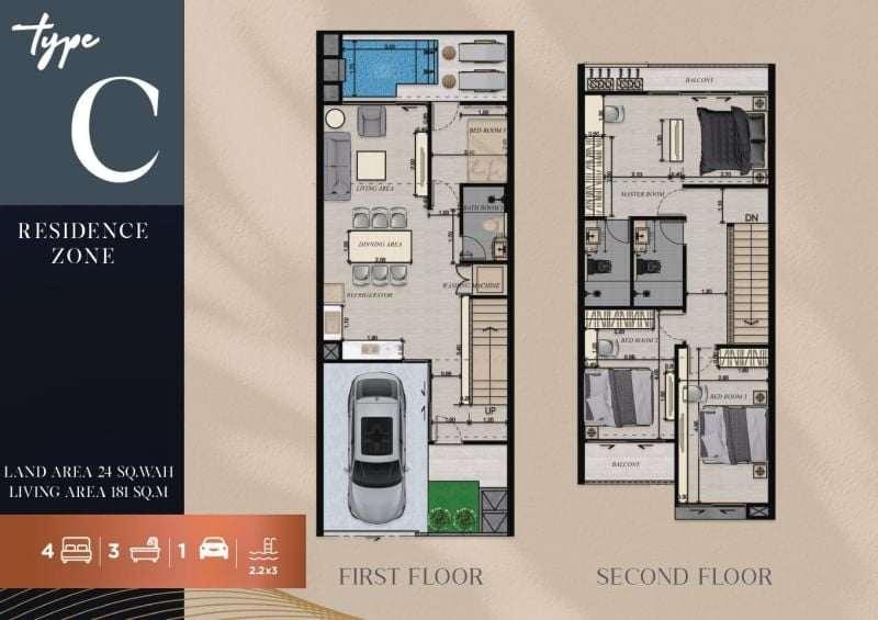 Villa La Richie. New Project 4 bedrooms 2 storey townhome with private pool near the center of Pattaya