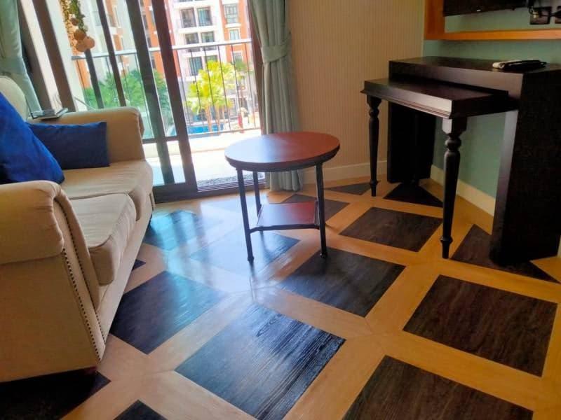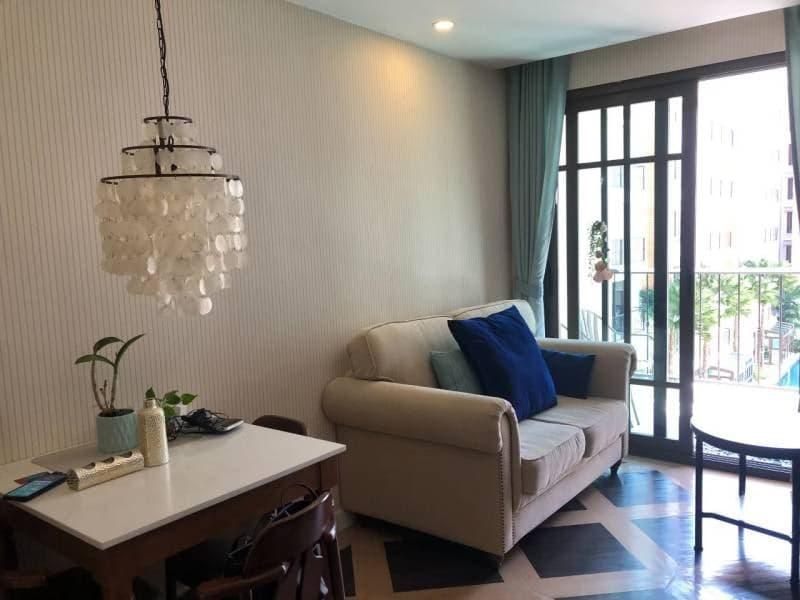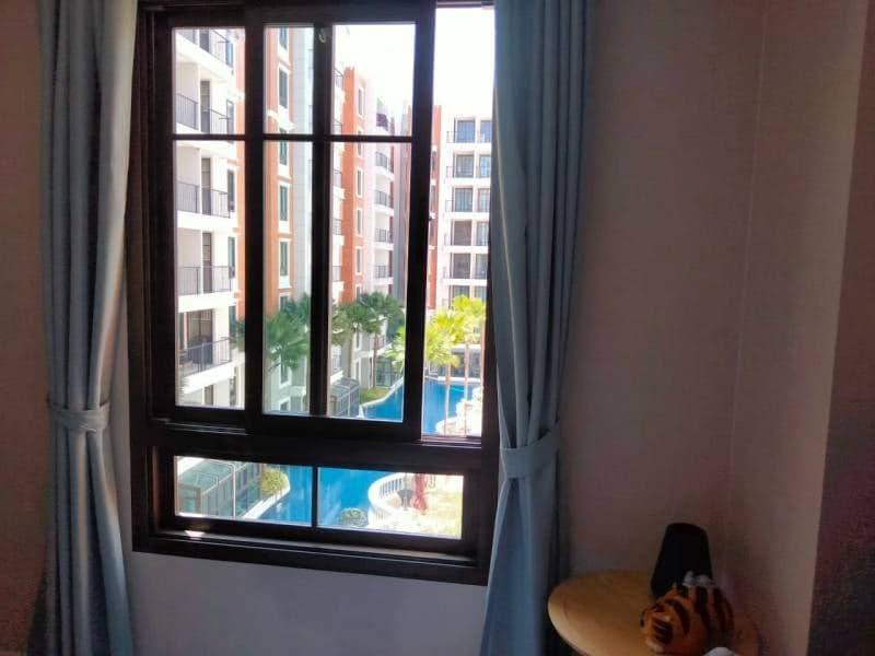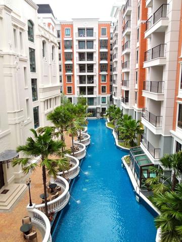 The apartment is 34.46 sq.m with 1 bedroom, 1 bathroom. 4th floor. Pool view. Fully furnished. Thai quota. Building E.