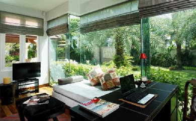 Вилла находится в престижном районе, неподалеку от вьезда в Лагуну, на Банг Тао, в элитном комплексе. В пяти минутах ходьбы - пляжная зона, в десяти - торговый центр и гольф клуб. В двадцати минутах езды на автомобиле находится исторический центр Пхукет Таун и Патонг с его ночными клубами и всевозможными развлечениями.Вилла выполнена из самых высококачественных материалов в современном тайском стиле с элементами хай-тек. На общирной территории раскинулся настоящий тропический сад с очень пышной растительностью. Для отдыха здесь предусмотрена большая беседка, шезлонги, большой бассейн.Внутри вилла оборудована с максимальным комфортом и роскошью: эксклюзивная мебель, выполненная на заказ и хай-тек кухня, всевозможные элементы декора и дорогая отделка. 4 спальни, 4 ванные комнаты, бассейн, элегантно оформленная территория, беседка.Цена на виллу в комплексе начинается от 45 386 000 бат