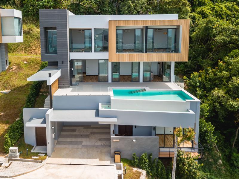 Высокий холм в живописном районе Чавенг Ной, прекрасная панорама моря, близость центрального пляжа Чавенг и крупных торговых центров (10 минут езды). Вилла 395 кв.м построена на участке площадью 776 кв.м. Вилла с 4 спальнями с видом на море будет представлять собой двухэтажную виллу с частным бассейном. В резиденцию ведет бетонная дорога и все необходимые коммуникации, линия электропередачи и три скважины для снабжения комплекса водой. В строительстве использованы качественные современные материалы.