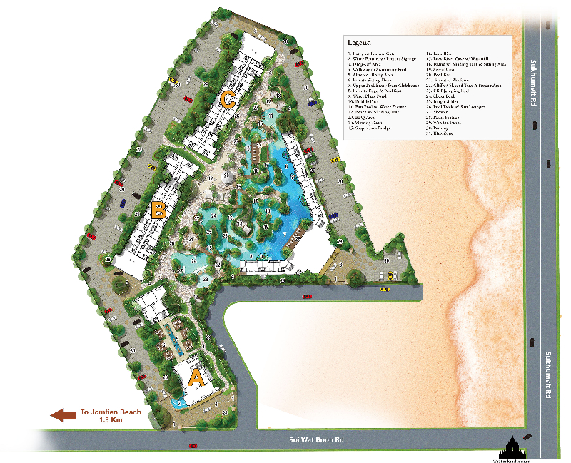 新的热带稀树草原沙公寓组成的三26层高的大楼1499公寓,位于约一公里从天海滩,可以方便地前往曼谷的道路,允许迅速进入城市中心和一个小时的车从曼谷机场。 复也将以七层高的酒店有150个房间。 奇异的设计复杂的金沙萨凡纳的基础上创建一个非洲主题,这体现在横向、热带水上公园具有人工河和大游泳池,随后是非洲的景观,它们和谐地包含三个住宅建筑在复杂的。 基本概念的原始项目的目的是创造一种气氛的宁静和隐私,这是促进人造海滩、幽静的帐篷、水滑梯和隐藏的洞穴和荒芜的地区为一个舒适的住宿。 公寓在热带稀树草原沙公寓的特征时尚的完成,在保持与其余的复杂的设计灵感的幻想狂野的广阔的非洲平原。 美妙的景观在内的现代建筑,美好的和谐创造气氛的一个热带天堂。 稀树草原沙–精致的时尚的居住地,有能力为居民提供所有必要条件和设施用于生活的梦想。 该项目提供设备齐全的工作室26平方米,公寓有一个和两个卧室35至65平方米。 m。 它提供了:小时的安全和视频监控,通过电子通行证,停车场,互联网的无线网络、一个健身房、商店、餐厅、酒吧、衣物。