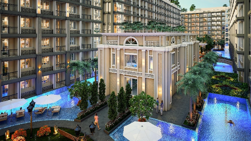 新的令人印象深刻的项目的住宅小区附近的天海滩是一五八层建筑物。 复杂的是,位于市中心附近,运输中心和购物中心。 银行、学校和幼儿园。 附近有家商店、购物中心、荷购物中心、夜市场,大C.到海边的距离只是超过1公里。