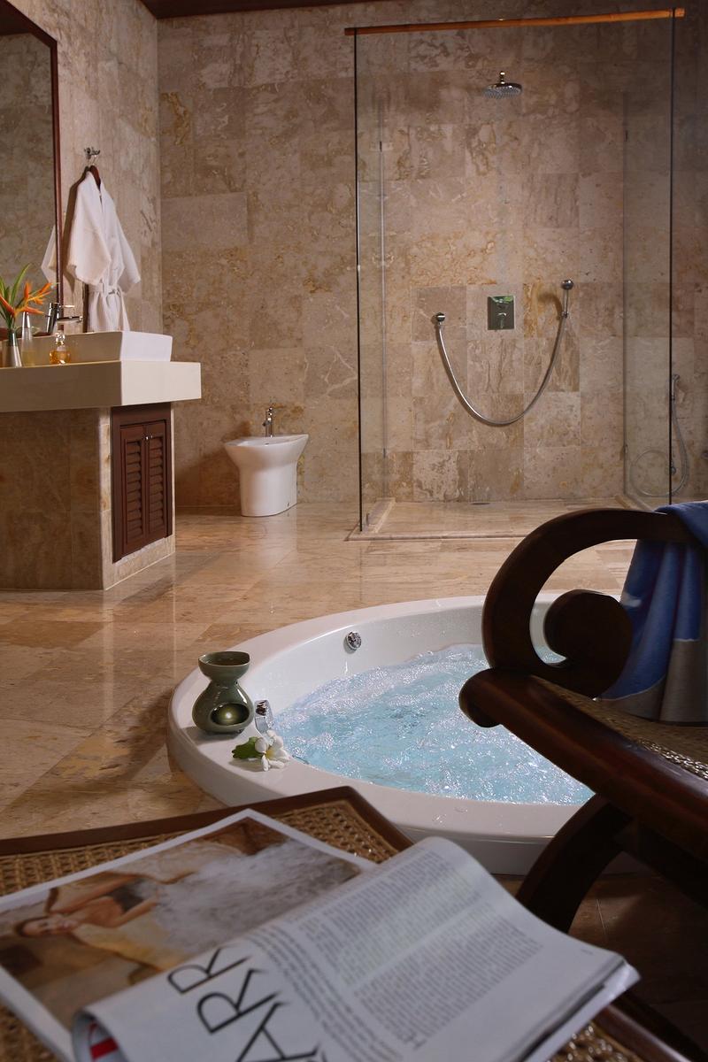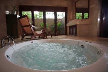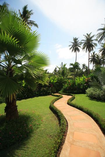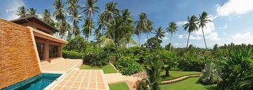 別墅周圍環繞著鬱鬱蔥蔥的園景花園,沐浴在鮮花,熱帶植物和廣闊的棕櫚樹中。周邊由帶有自動門和對講機的牆壁保護。別墅後面有一個菜園。別墅的所有臥室都朝北,非常適合在熱帶環境中使用,因為它可以最大限度地利用日光,並最大限度地減少陽光直射產生的熱量。